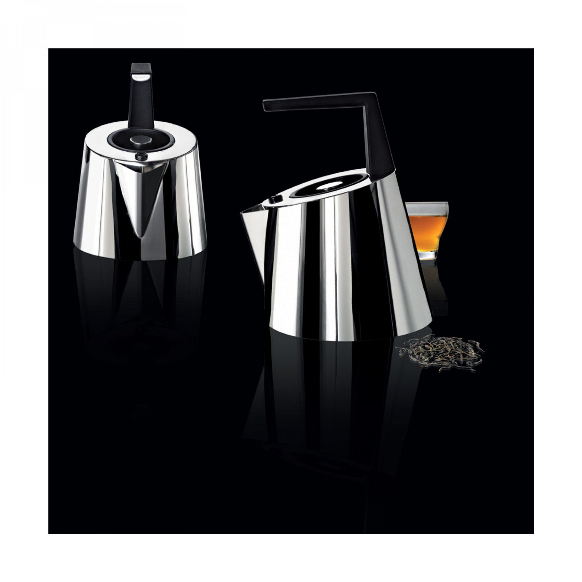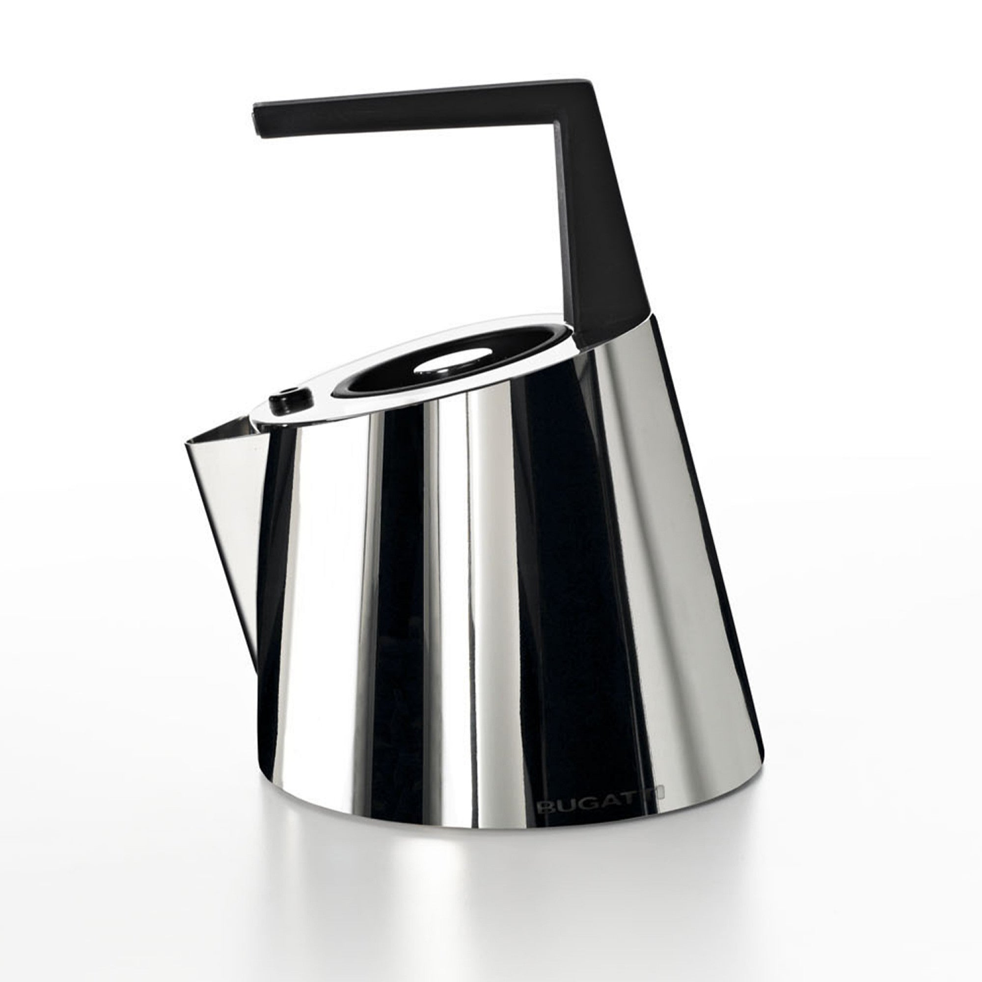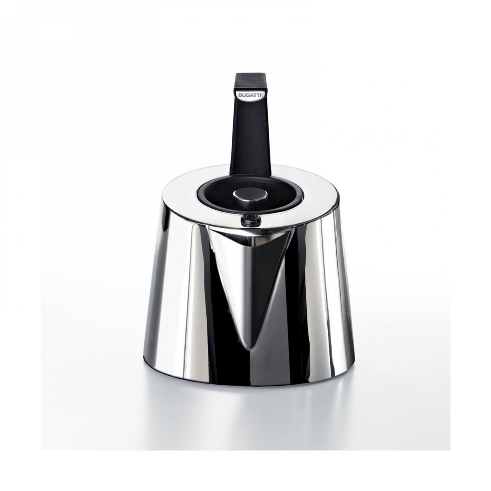 ViaRoma is the stovetop kettle with a dynamic and modern shape. The ViaRoma kettle whistles to draw attention as soon as the water comes to the boil. The Bugatti kettle is made of 18/10 stainless steel. The handle and knob are made of heat-resistant nylon. It can be used with the four main types of hob i.e. gas, electric, glass-ceramic and induction. With its slender shape and design, you can pour from this kettle without removing the lid.