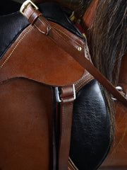 The classic rocking horse: no upper-class children’s playroom was without one. Some were mounted on oval wood rockers, others on a ‘safety’ stand, where steel swings allowed for greater movement on a stationary base. Our iconic rocking horse is a full-sized reproduction of originals dating back to the 19th C. Hand carved in top quality mahogany. Hand-made saddle and tack of real bridle leather. The expert skills of wood carvers, cabinetmakers, and saddlers are evident. Hand-finished in a warm and glowing French-style varnish, slightly distressed to make it look somewhat aged. A timeless treasure and a dream toy for both boys and girls. Imagine its value in 50 years…