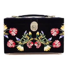 Fresh faced and fun, Zoe is sophisticated but playful. The Medium case’s soft forest green body highly embroidered with classic floral designs is as beautiful as its accessories inside. Includes velvet exterior, LusterLoc™ interior, pale gold hardware, and removable mini travel piece.