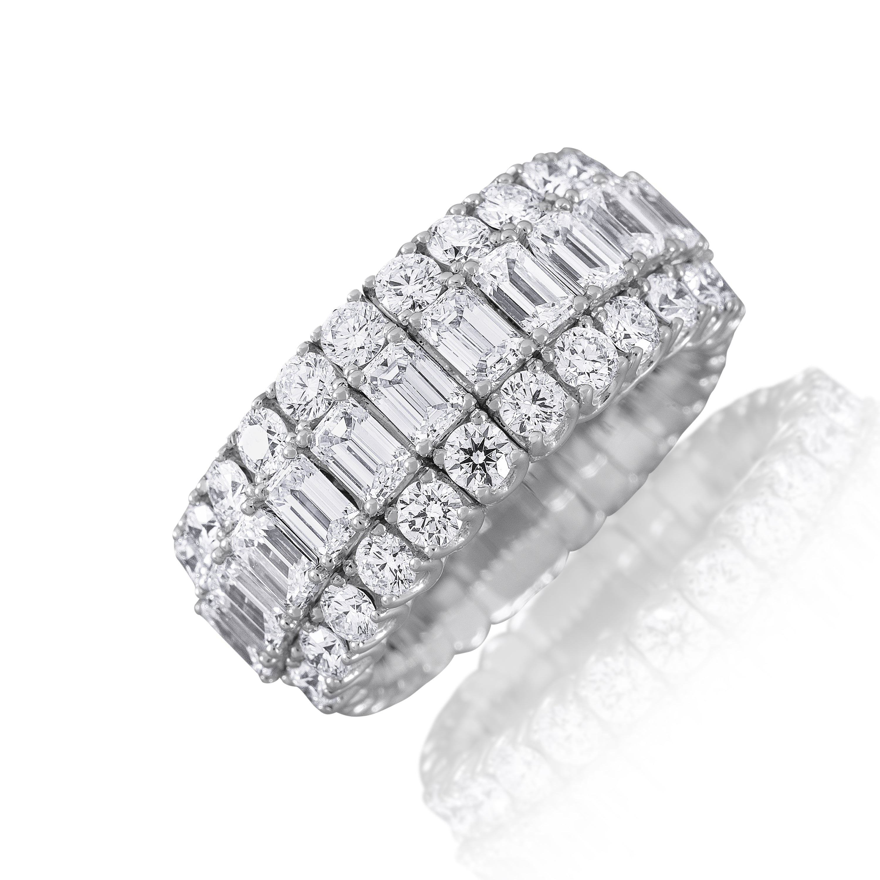 Xpandable half-way set band with white diamonds set in 18K white gold.