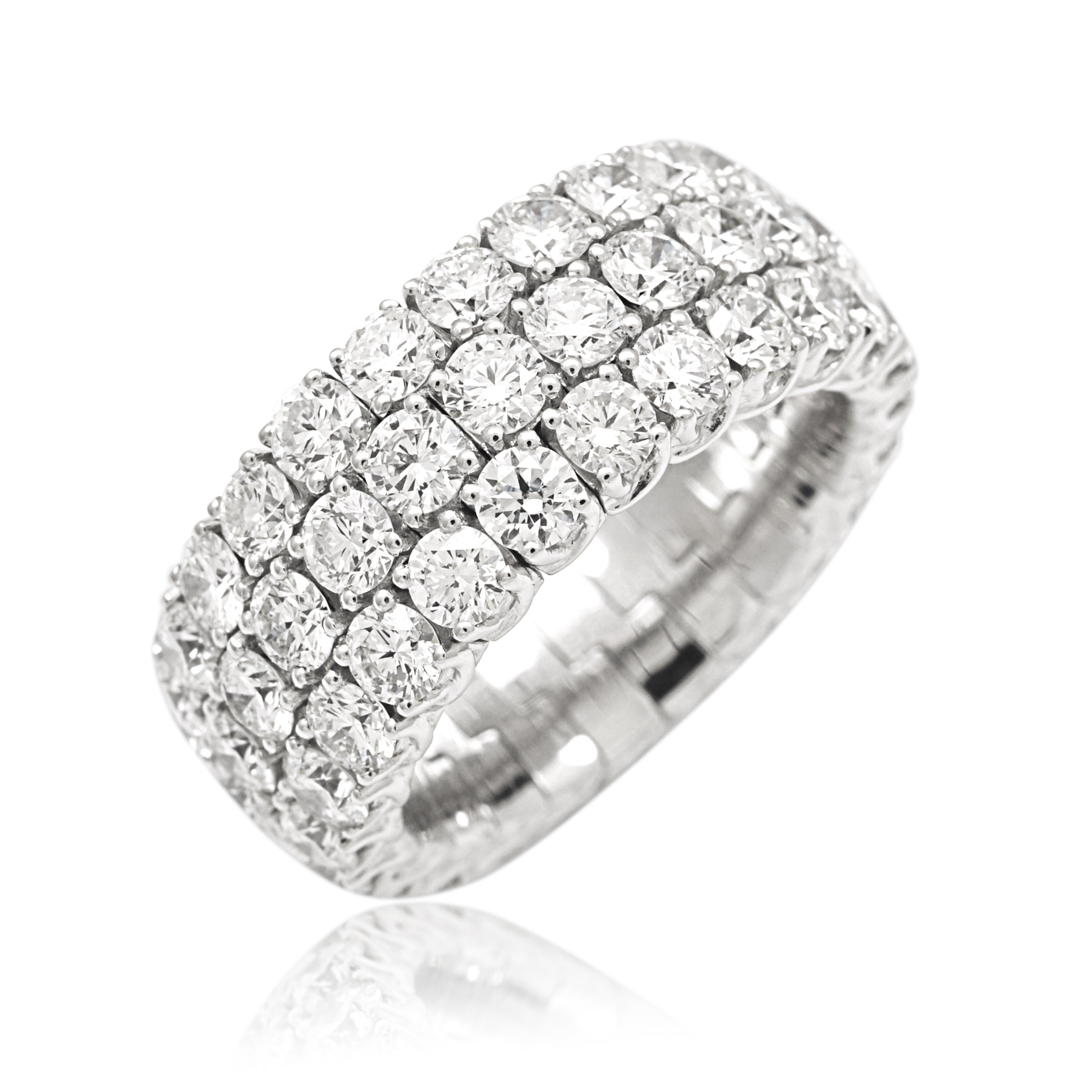 Xpandable band with white diamonds set in 18K white gold.